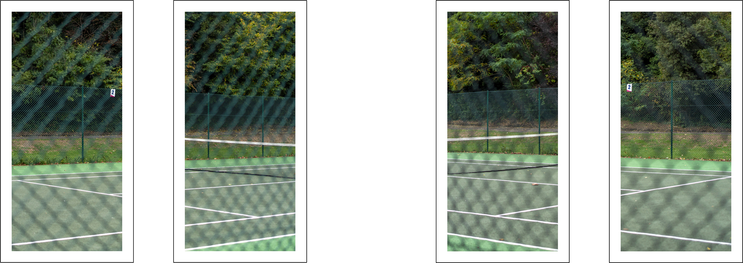 These photographs for Drift were taken at the tennis courts in Maryon Park, Greenwich, London – the setting of the final scene in Michelangelo Antonioni’s 1966 film Blow-Up. The tennis court acts as a liminal space between reality and performance. At the end of the film, the protagonist, a photographer, watches a group of mimes play tennis without a ball. When the imaginary ball bounces over the fence, he picks it up and throws it back into play – a gesture of surrender, acceptance, and acknowledgement of the collapse of the distinction between reality and imagination. Diese Fotografien für Drift wurden auf den Tennisplätzen im Maryon Park in Greenwich, London, aufgenommen – dem Schauplatz der Schlussszene in Michelangelo Antonionis Film Blow-Up (1966). Die Tennisplätze fungieren darin als Schwellenraum zwischen Realität und Inszenierung. Am Ende des Films beobachtet der Protagonist, ein Fotograf, eine Gruppe von Pantomimen, die ohne Ball Tennis spielt. Als der imaginäre Ball über den Zaun springt, hebt er ihn auf und wirft ihn zurück ins Spiel – eine Geste der Kapitulation, der Akzeptanz und der Anerkennung des Zusammenbruchs der Grenze zwischen Realität und Fantasie. Drift (Apollo e le Muse I - III), 2024