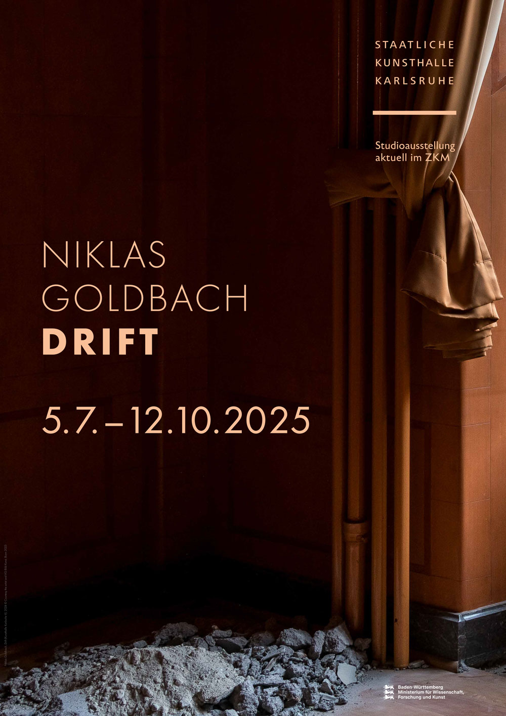 From the foreword of the catalogue accompanying the exhibition Niklas Goldbach. Drift, Part 1 of the exhibition series Mind the Gap at the Staatliche Kunsthalle Karlsruhe at the ZKM, 5 July 2025 – 15 October 2025