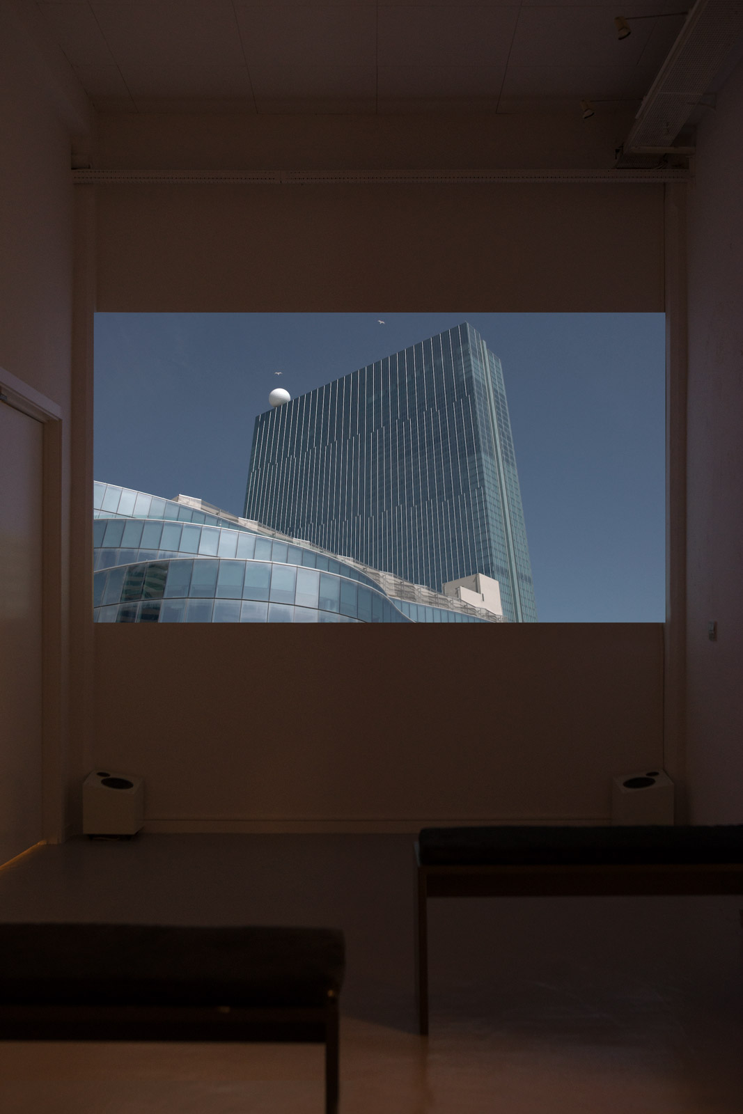 […].Der hochmoderne Gebäudekomplex des Revel wurde 2012 in Atlantic City als höchstes Gebäude der Stadt und zweithöchstes Casino der Vereinigten Staaten eröffnet. Die Glücksspiel-Gesetzgebung in New Jersey zählt zu den liberalsten in den USA. Dennoch scheiterte das Milliardenprojekt bereits zwei Jahre nach seiner fulminanten Eröffnung. Live at Revel zeigt das Gebäude von außen: trotz Glasvorhangfassade eine spiegelglatte, abweisende kapitalistische Festung. Subtile Zeichen lassen den möglichen Verfall des Investoren-Traums erahnen […].. […].The ultra-modern Revel complex opened in Atlantic City in 2012 as the tallest building in town and the second highest casino in the United States. Gambling laws in New Jersey are among the most liberal in the country. And yet within two years of its grandiose opening this project costing billions was bankrupt. Live at Revel shows the building from the outside: the glass curtain façade is just the glib cover for a forbidding fortress of capitalism. Subtle clues indicate the potential decay of this investor’s dream […].
